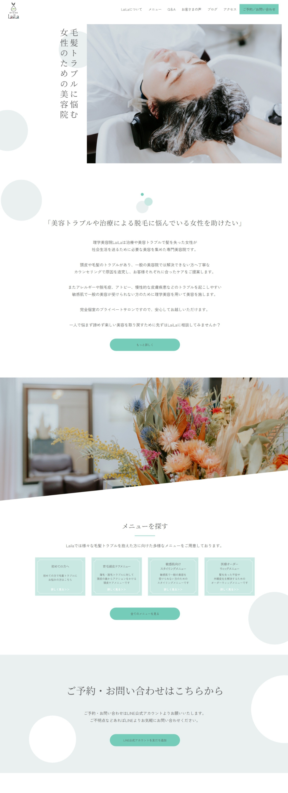 またお悩みごとに寄り添うオーナーの人柄が伝わるように、またサイトを訪れたユーザーが共感、依頼しやすいよう、お客さまの声を集めていただき、できる限り盛り込んでいます。